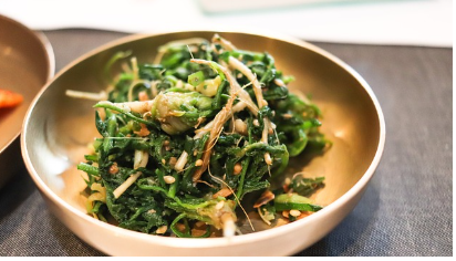 끓는 물에 1분 이내로 살짝 데쳐주면 쓴맛이 완화돼요. 데친 후 얼음물에 넣어도 맛이 깔끔해져요.