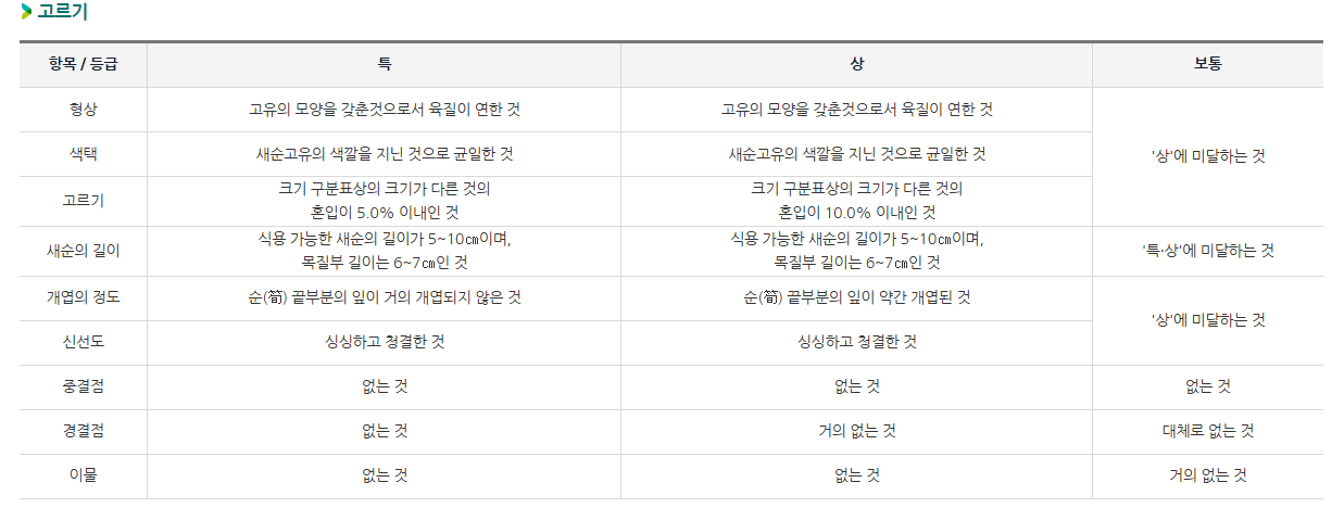 | 냉동 보관 | 데친 후 물기 제거하고 소분하여 냉동. 해동은 자연해동이 좋아요. |