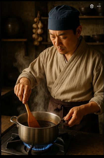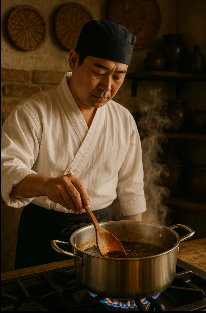 - 냄비에 간장, 설탕, 식초, 물을 넣고 끓여 식힙니다.