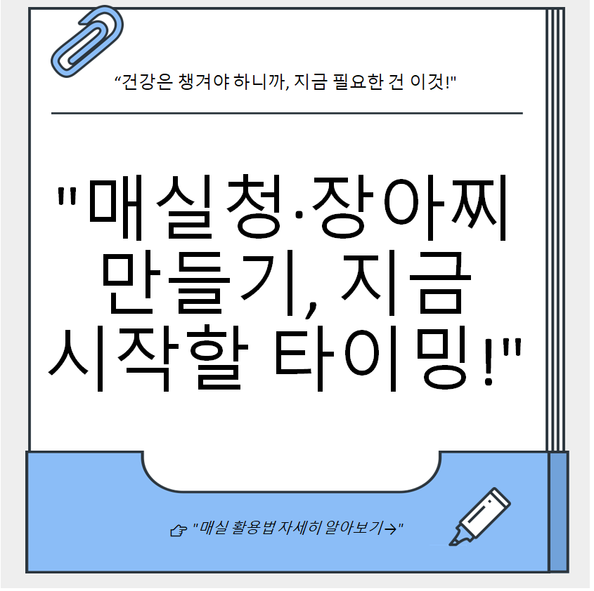 Tip: 매실 효능을 최대한 살리려면 청매실을 사용하는 것이 좋으며, 금속 용기를 피하고 유리병을 사용하는 것이 좋습니다.