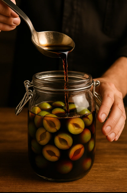 - 소독된 유리병에 매실을 담고 식힌 간장물을 부어줍니다.