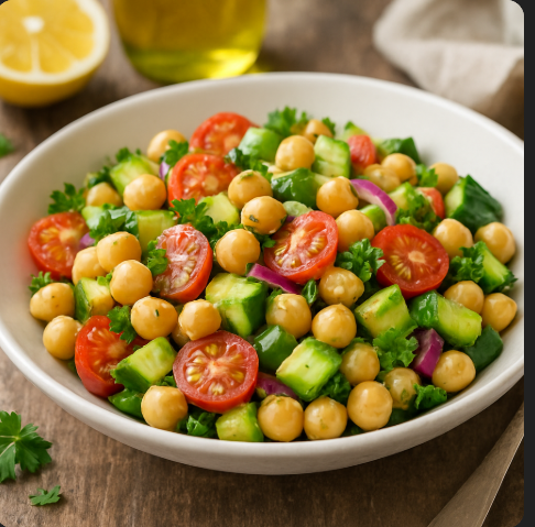 | 병아리콩 샐러드 | 삶은 병아리콩에 토마토, 오이, 아보카도, 레몬즙, 올리브오일을 섞어 간단하게 완성! |