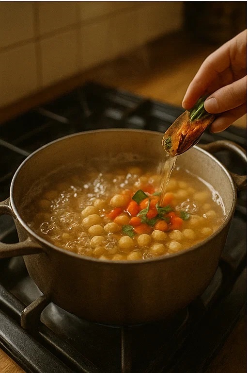 병아리콩을 부드럽고 맛있게 삶으려면 몇 가지 중요한 포인트를 꼭 기억해야 해요. 먼저 병아리콩은 충분히 불리는 것이 핵심입니다. 보통 실온에서 8~12시간, 겨울철에는 미지근한 물에 12시간 이상 불려야 해요. 시간이 없다면 끓는 물에 2시간 정도 담가 급속 불림도 가능하지만, 맛은 조금 떨어질 수 있습니다. 불린 콩은 깨끗이 씻은 후, 냄비에 병아리콩:물 = 1:4 비율로 넣고 약불에서 40~50분 정도 삶아주세요.