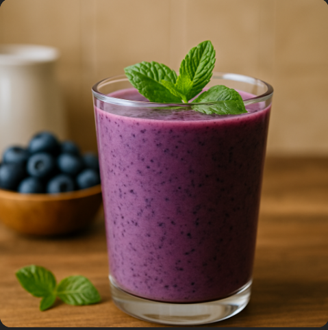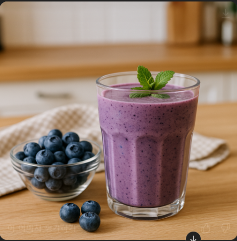 주스를 만들 때 팁 하나! 생 블루베리를 쓸 땐 얼음을 조금 넣어주면 시원하고 부드러운 식감이 더해지고, 냉동 블루베리를 쓸 땐 그냥 갈아도 시원한 스무디처럼 즐길 수 있어요. 아이 간식이나 다이어트 셰이크로도 최고랍니다.