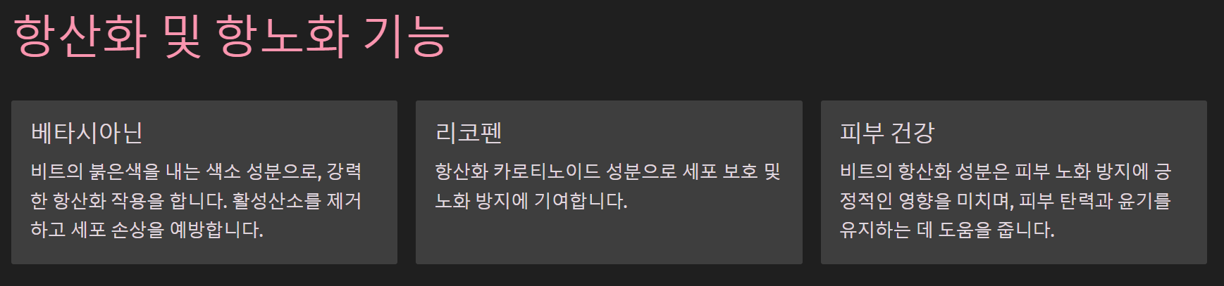 비트 효능 중 현대 질환에 직결된 효과입니다.