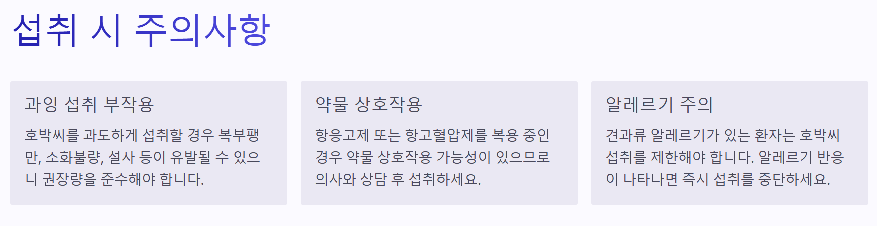 이 범위 내에서 섭취하면 호박씨 효능을 충분히 누릴 수 있습니다.