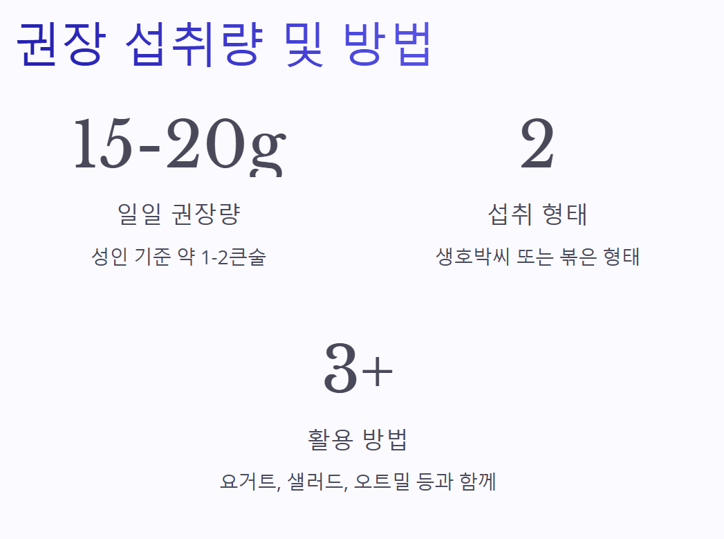 ✅ 하루 섭취량: 약 하루 1~2큰술(15~20g) 정도가 적당합니다.