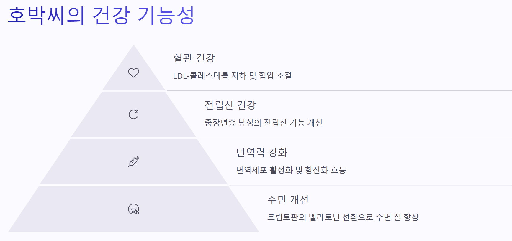 특히 중장년층에게는 고혈압 예방, 배뇨 개선, 수면 질 향상 같은 효과가 큰 매력입니다.