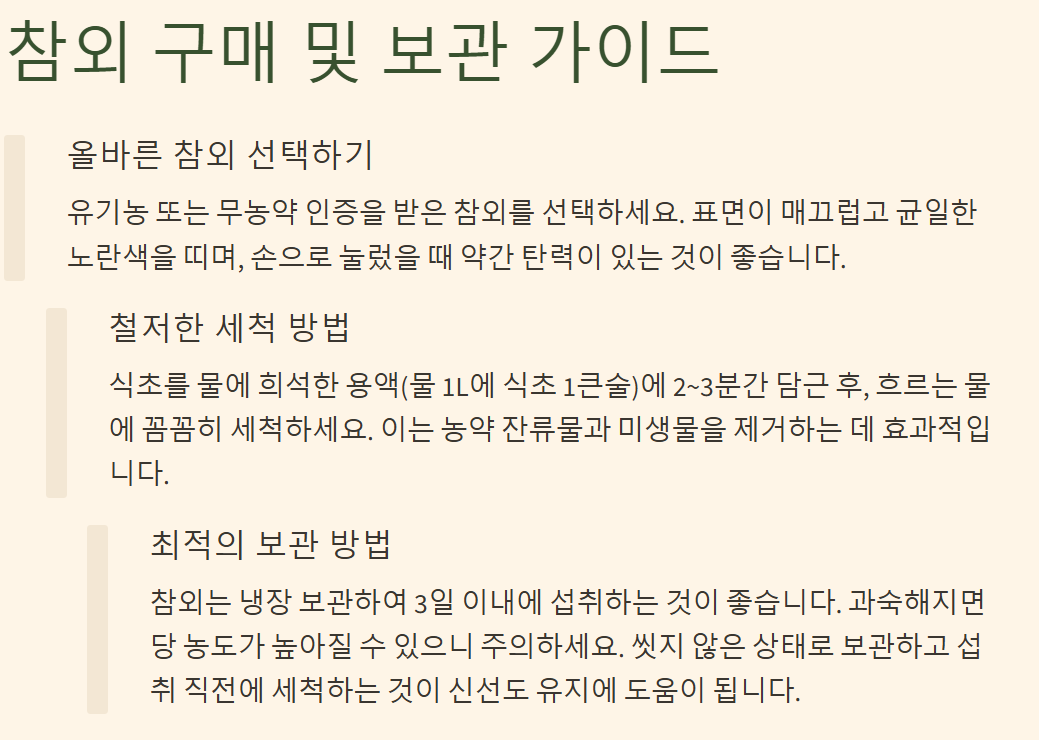 - 당뇨 환자: 참외 칼로리가 낮더라도 과당이 많아 혈당 관리가 필요한 분들은 섭취량 조절 필수