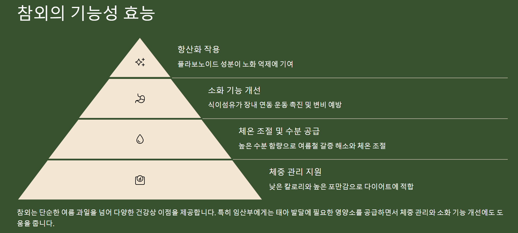 - 비타민C와 수분 풍부: 여름철 탈수 예방과 면역력 강화에 효과적입니다.